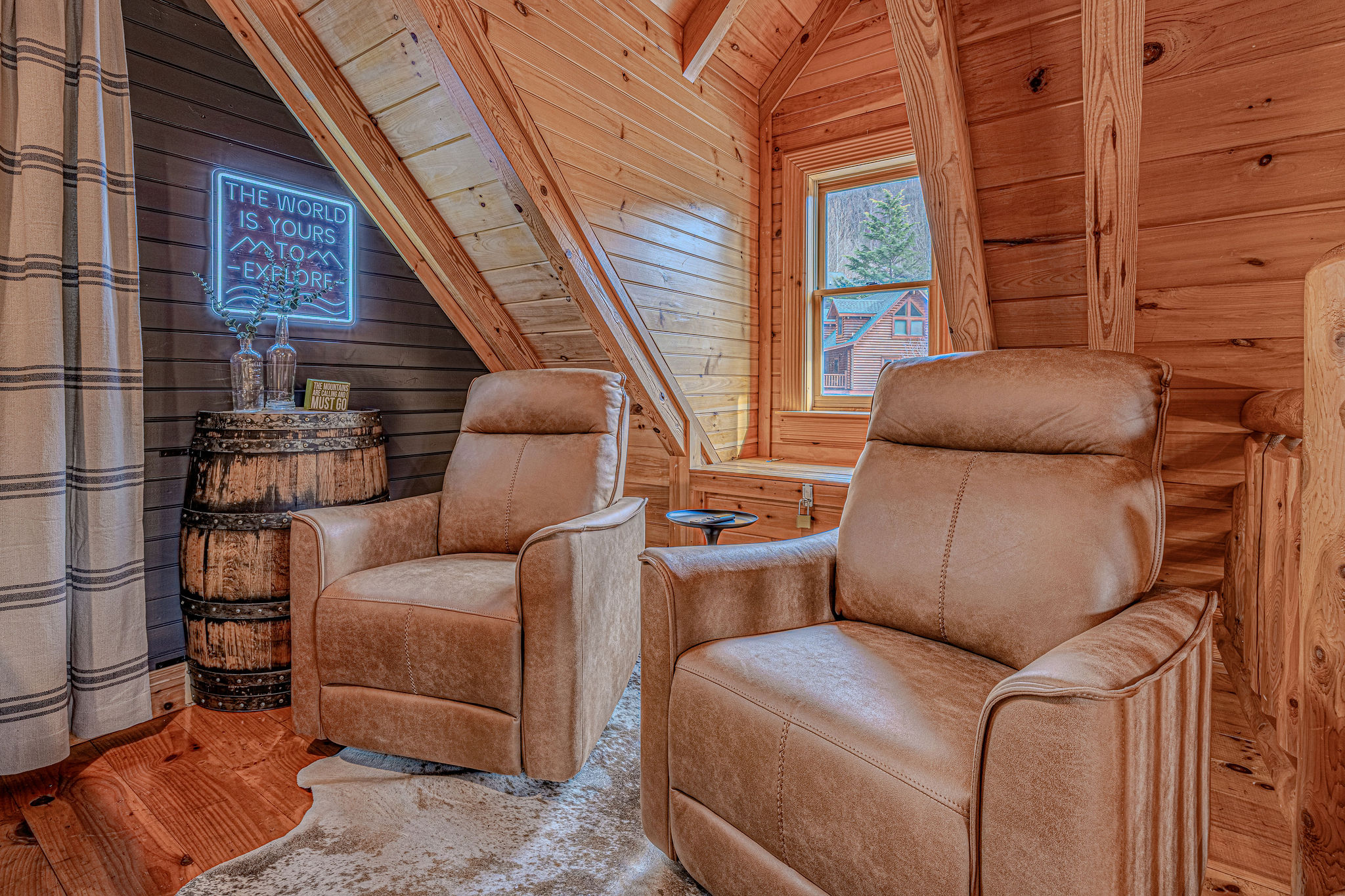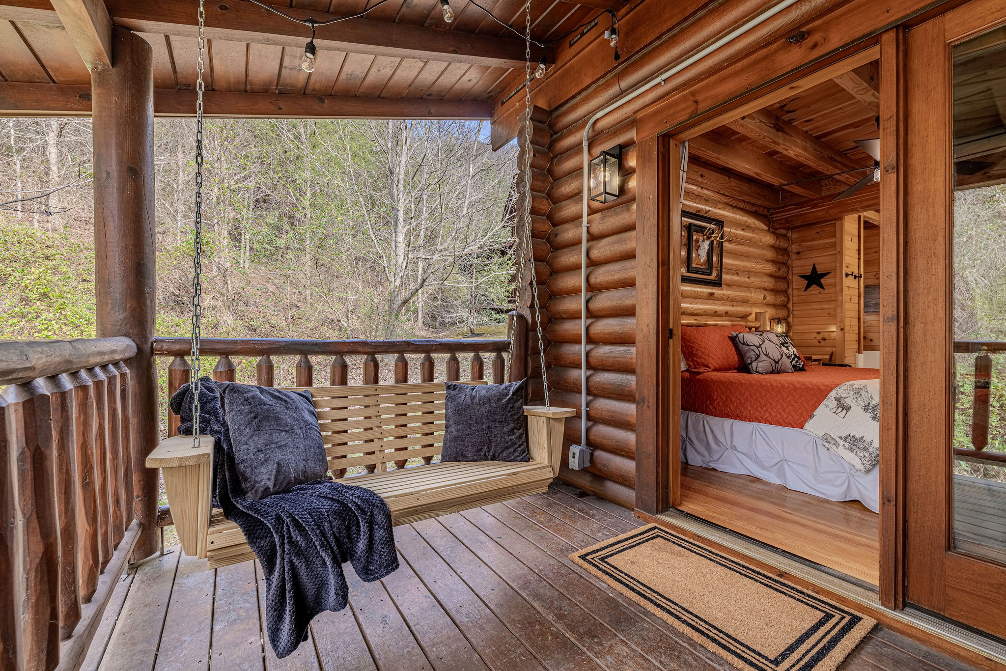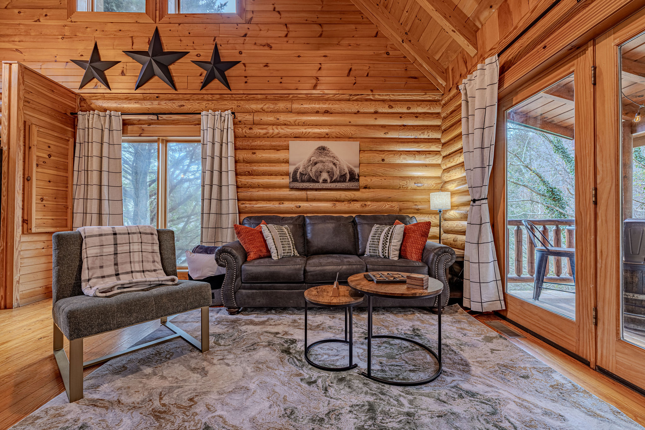 Rye on the Rocks is a modern and cozy cabin designed for couples or small families seeking a peaceful Smoky Mountain escape. Close to Pigeon Forge with easy, well-maintained roads, this cabin offers convenience without sacrificing serenity. Sip your coffee on the porch while enjoying the soothing view and sound of cascading waters right outside—an incredibly calming touch that makes this cabin feel truly special. This cabin is the perfect blend of comfort, style, and location.