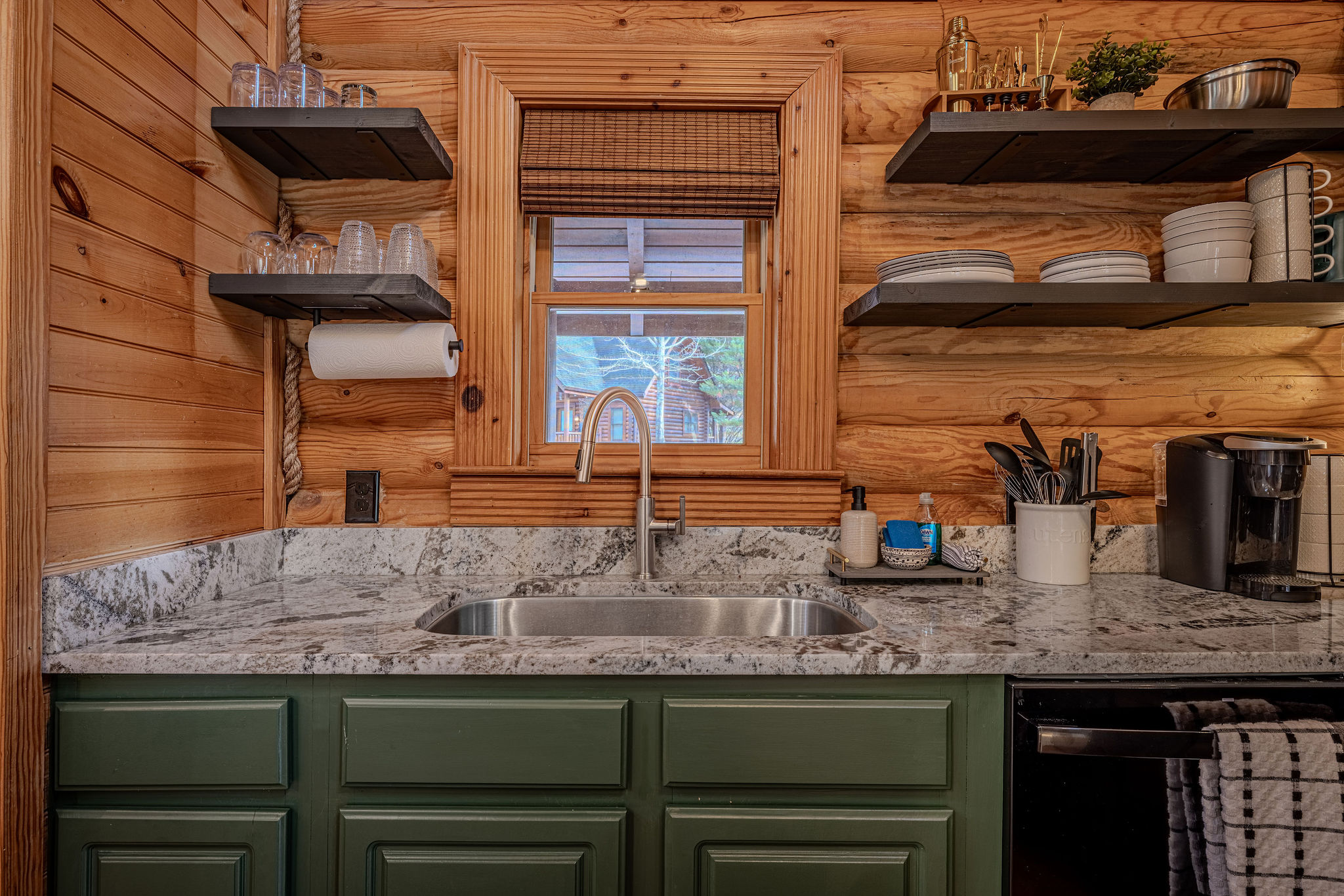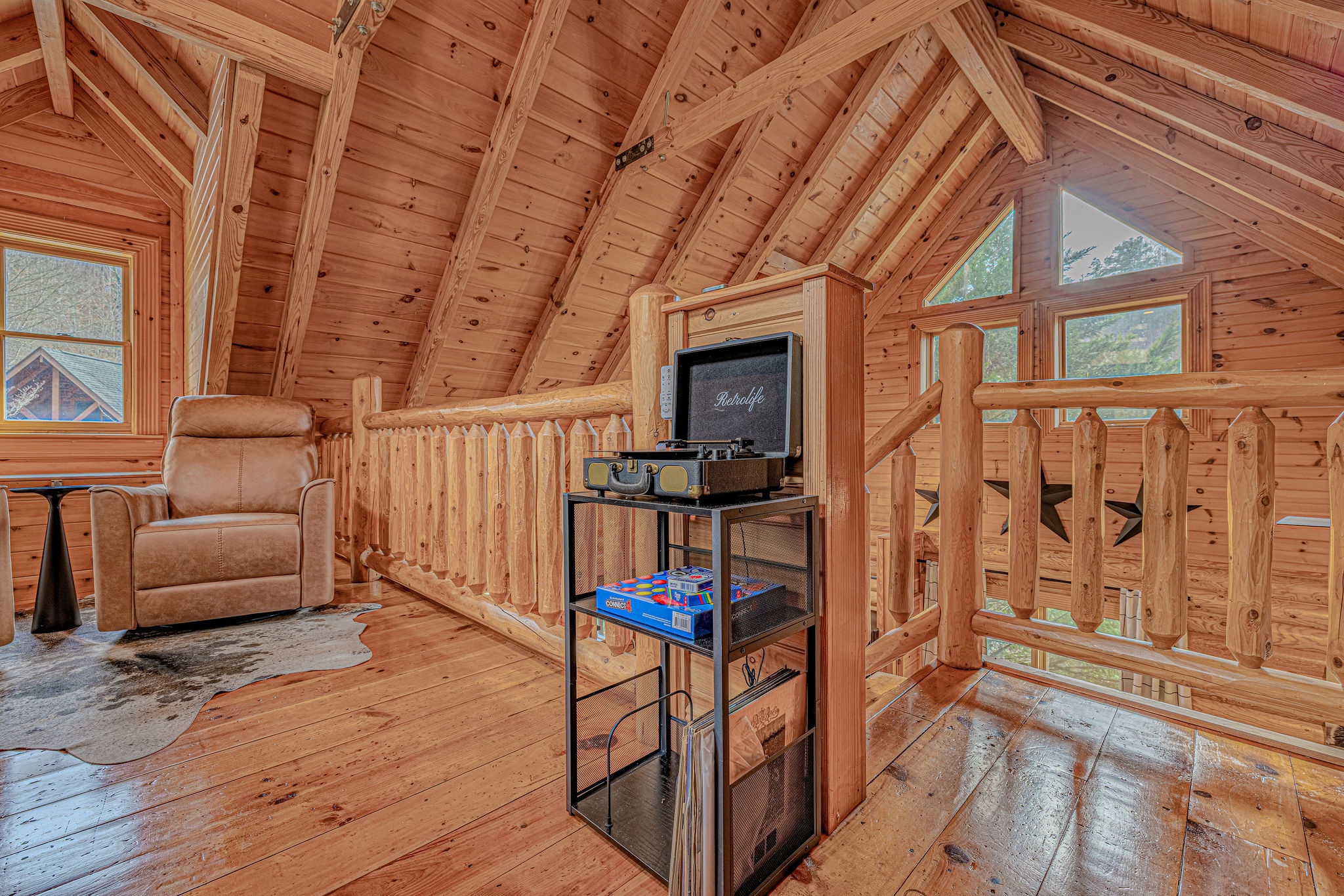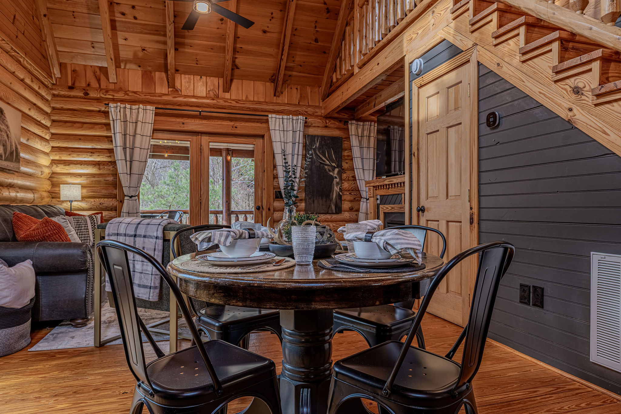 Rye on the Rocks is a modern and cozy cabin designed for couples or small families seeking a peaceful Smoky Mountain escape. Close to Pigeon Forge with easy, well-maintained roads, this cabin offers convenience without sacrificing serenity. Sip your coffee on the porch while enjoying the soothing view and sound of cascading waters right outside—an incredibly calming touch that makes this cabin feel truly special. This cabin is the perfect blend of comfort, style, and location.